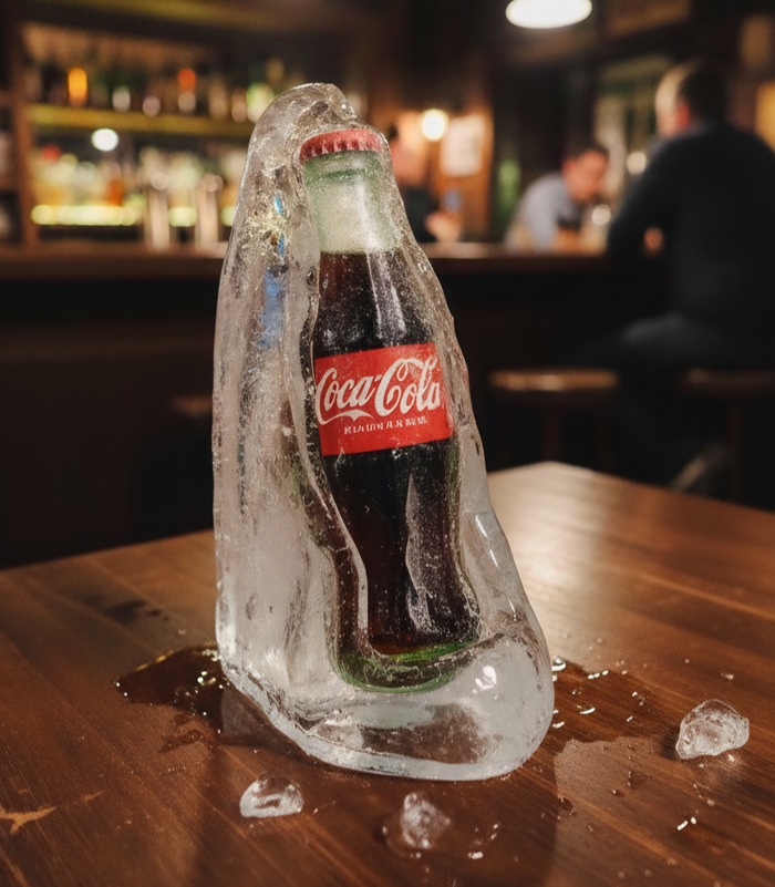 Gadget pubblicitario Coca Cola con bottiglia effetto